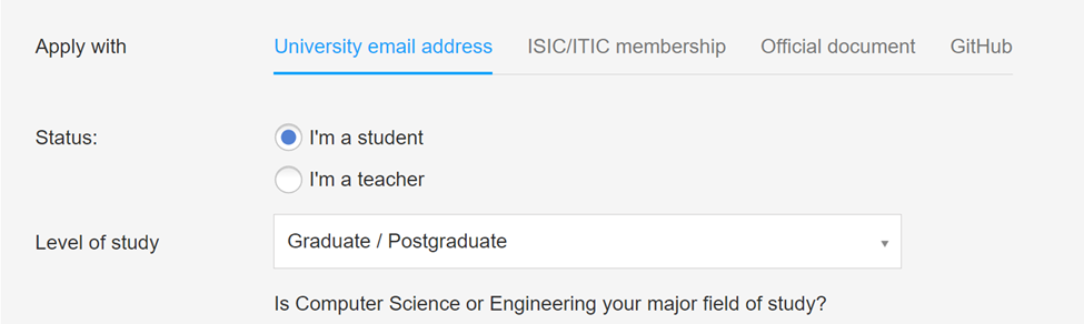 If you haven’t applied for an educational license for JetBrain, please follow the instructions below to do so. If you have your own preferences about Java IDEs, please move on to the next step.
