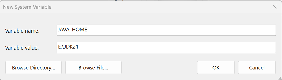 Install it, When asked to select a destination folder. I suggest you should go to another disk(rather than C), and create a new folder called “JDK21” or like “JDK-21”. You may use the Create New Folder button below to create a new folder. Thus, my Java path here would be E: