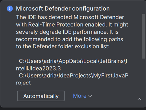 Simply click Automatically, you will be good! Then Let’s run the sample code using the Run button(See below)