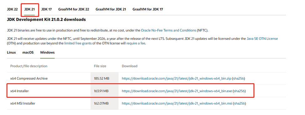 Go to:https://www.oracle.com/java/technologies/downloads/#java21