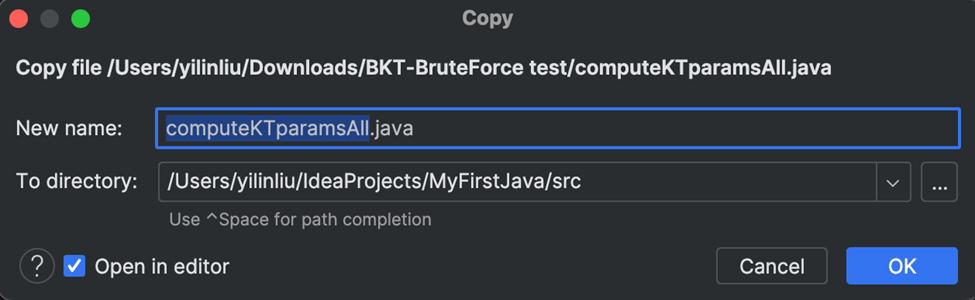 2. Copy computeKTparamsAll.java, right click on the src folder, then click Paste, then click OK