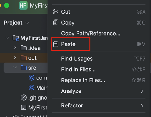 Similarly, copy TestData.txt, and paste to the root directory. Mine’s name is MyFirstJava