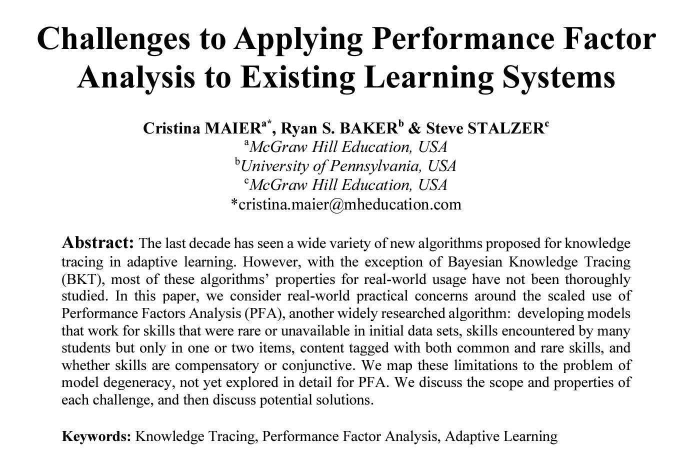 Althrough PFA has been widely used in research and very successful in predicting studentsâ future performance, thereâs little study on what factors impact PFAâs performance in real-world settings.